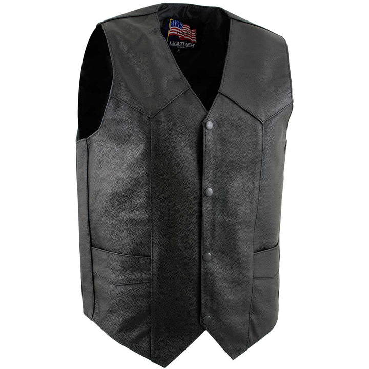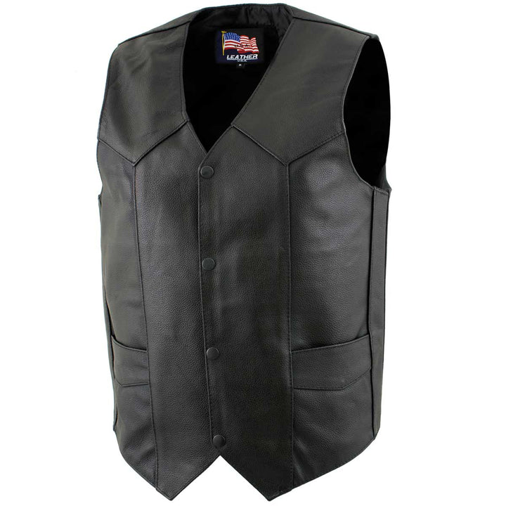 USA Leather 1201 Men's Black Classic Club Style Motorcycle Original Leather Vest