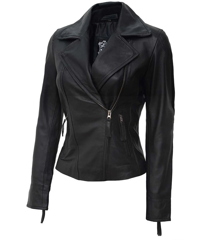 Its asymmetrical zip closure, sleek biker design, and practical pockets set it apart from ordinary women’s leather jackets.