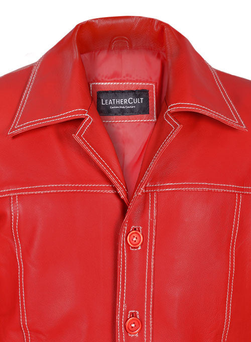 Channel rebellious energy and '90s street-style edge with this Brad Pitt Fight Club Leather Jacket. Crafted from genuine cowhide leather in a bold crimson red, this jacket mirrors the unforgettable look worn by Brad Pitt as Tyler Durden in the cult classic Fight Club. With its wide lapel collar, classic button closure, and vintage finish, this jacket is more than just outerwear—it's a style statement.