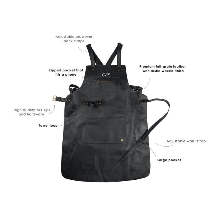 Introducing our brand new cross-back full-grain leather apron in a distressed waxy black finish. Designed for the utmost comfort, our brand-new cross-back apron reduces pressure on the neck - perfect for those long hours in the workshop, bar, or kitchen!