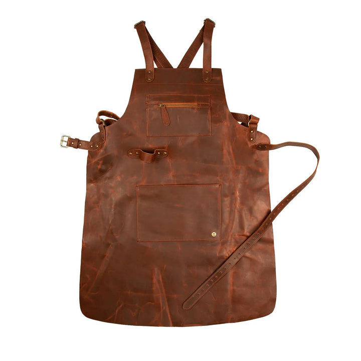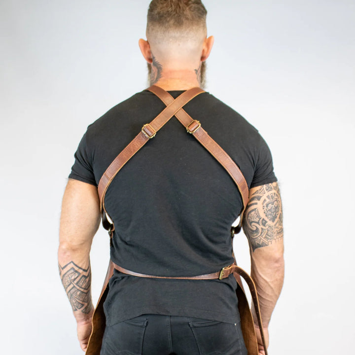 Introducing our brand new cross-back full-grain leather apron in a distressed waxy brown finish. Designed for the utmost comfort, our brand-new cross-back apron reduces pressure on the neck - perfect for those long hours in the workshop, bar, or kitchen!