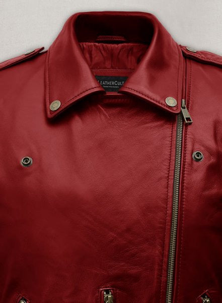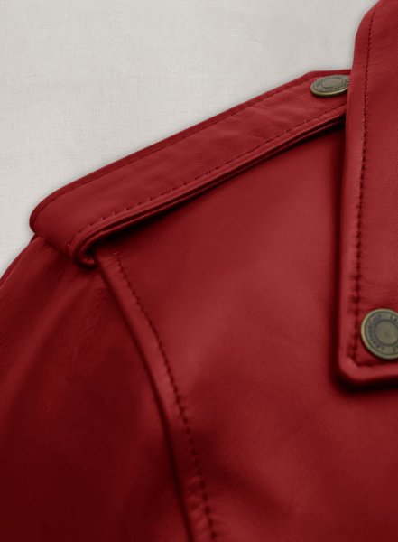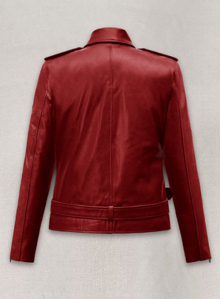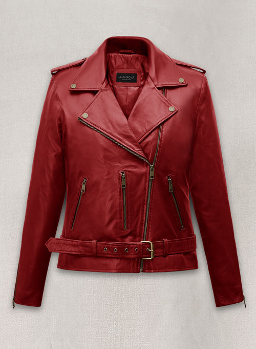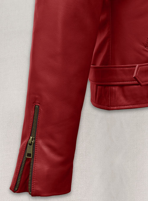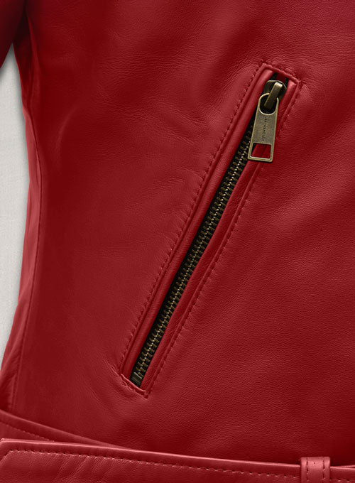Crafted from 100% pure Napa leather, this Emilia Clarke leather jacket adds a festive twist to your wardrobe, offering timeless moto appeal with a modern, feminine edge. Perfect for chilly nights, holiday events, or adding a pop of bold color to your everyday outfit.