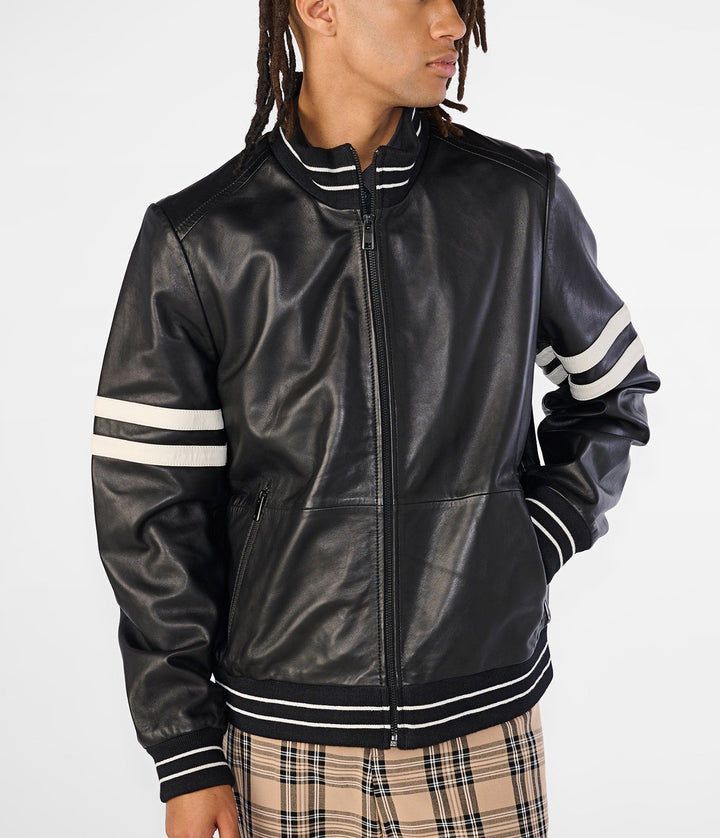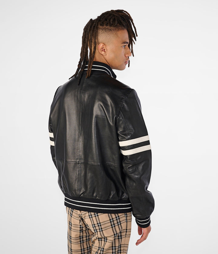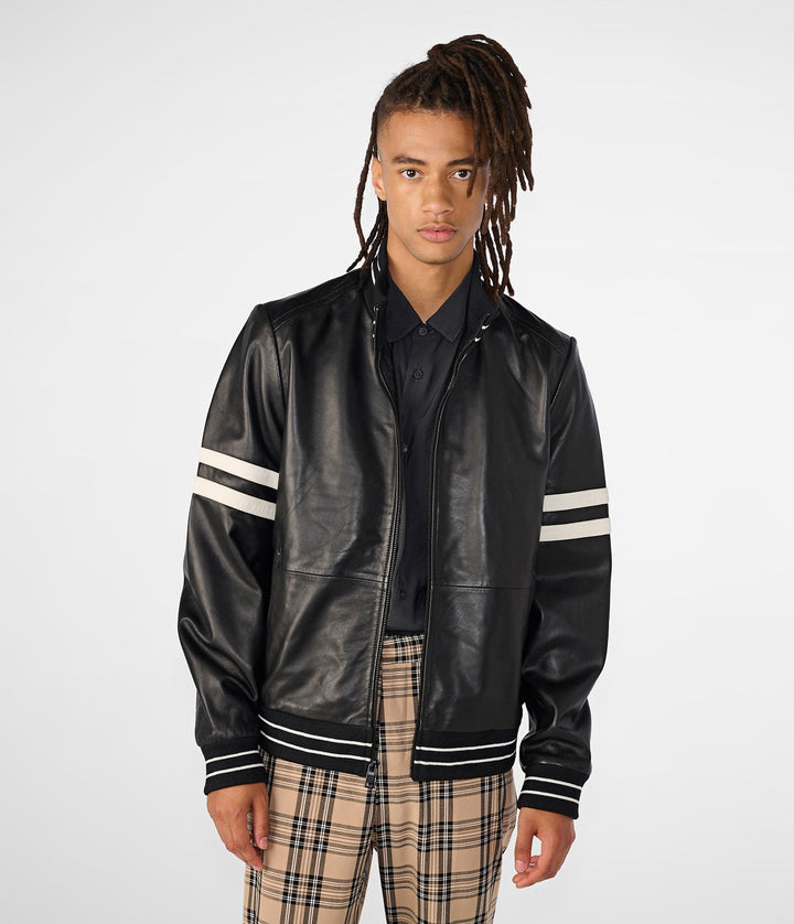 Jacob Bomber Men’s Leather Jackets With Stripe – Black