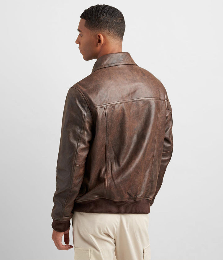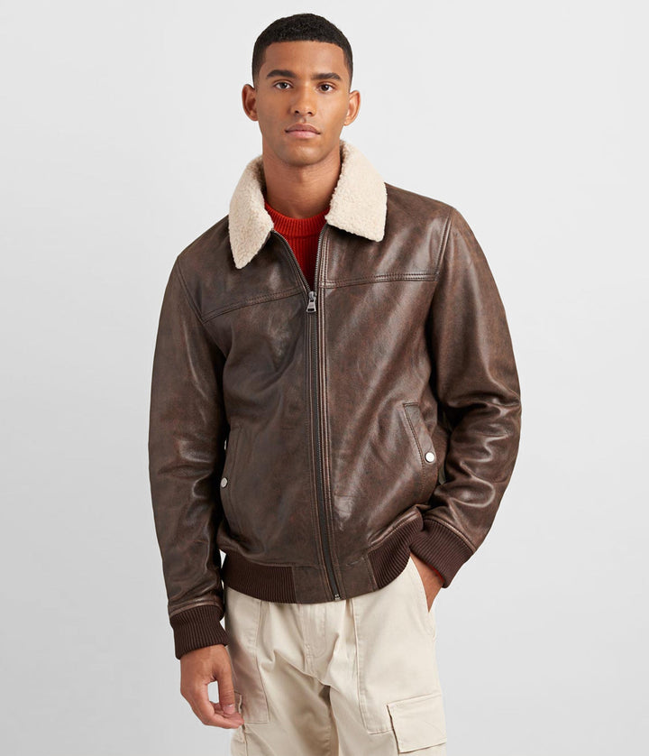 Leather Aviator Bomber Men’s Jackets With Detachable Faux Fur – Brown