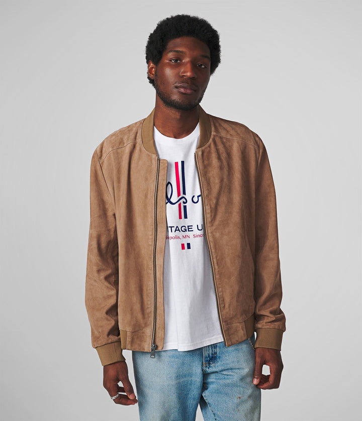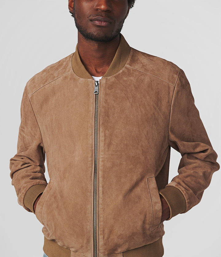 Key Features: Stratton Taupe Suede Bomber Men’s Leather Jackets