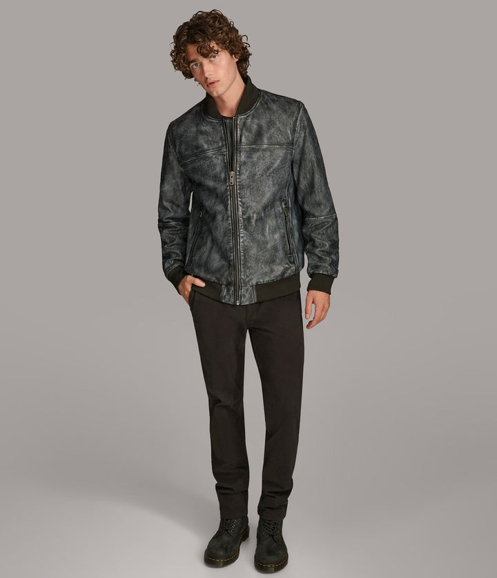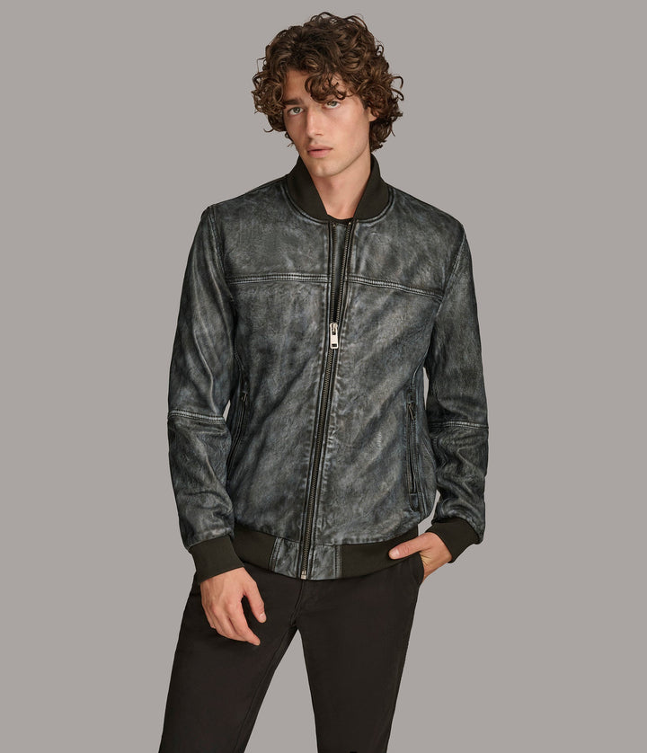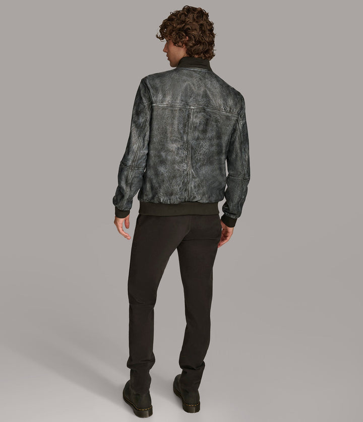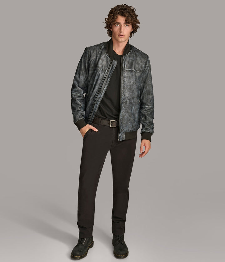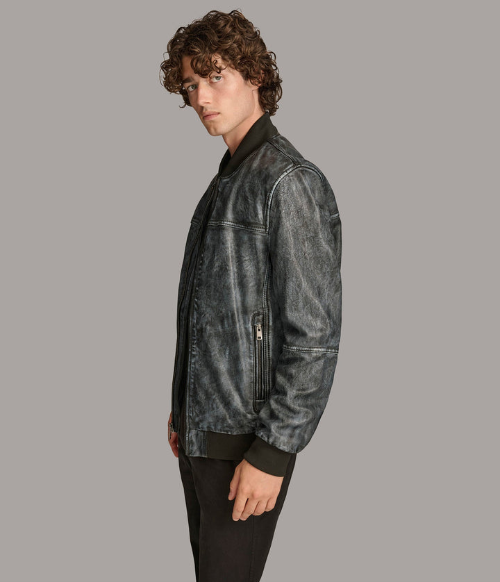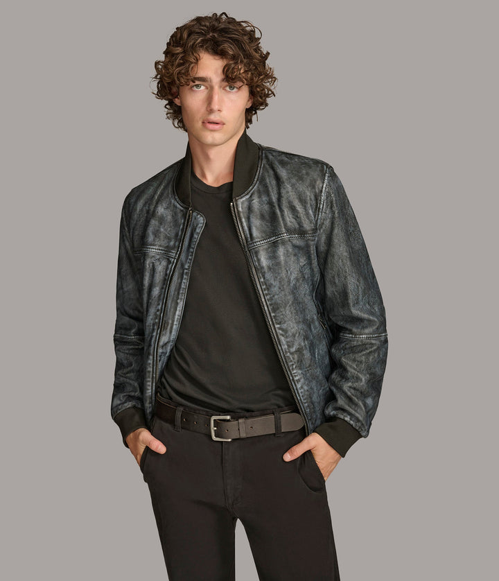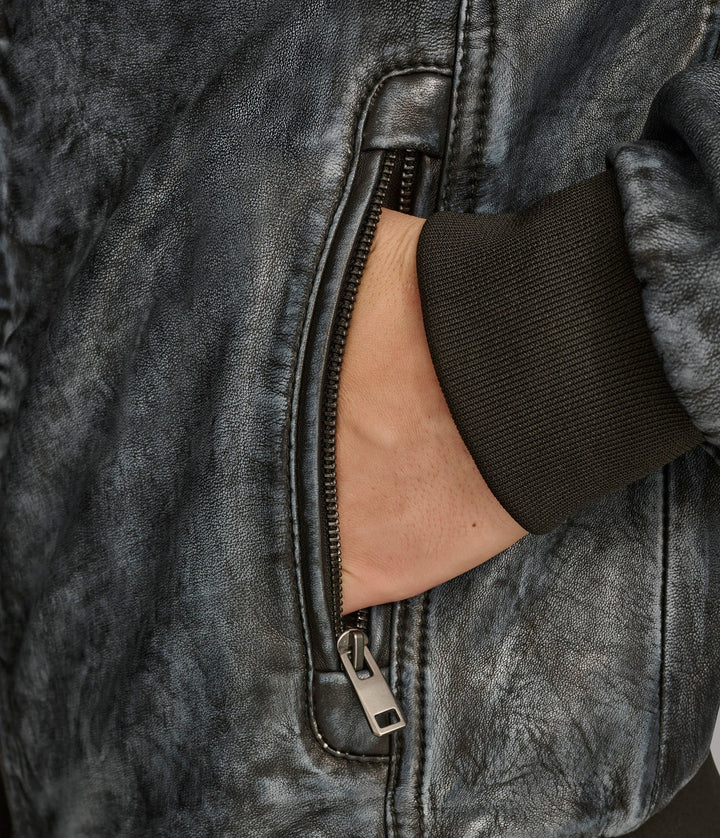 The Tate Denim Bomber Leather Jacket by 7corse is where laid-back confidence meets high-end leather construction. With its denim-inspired hue, sleek zipper finish, and sporty ribbed details, this jacket blends urban cool with rugged durability.