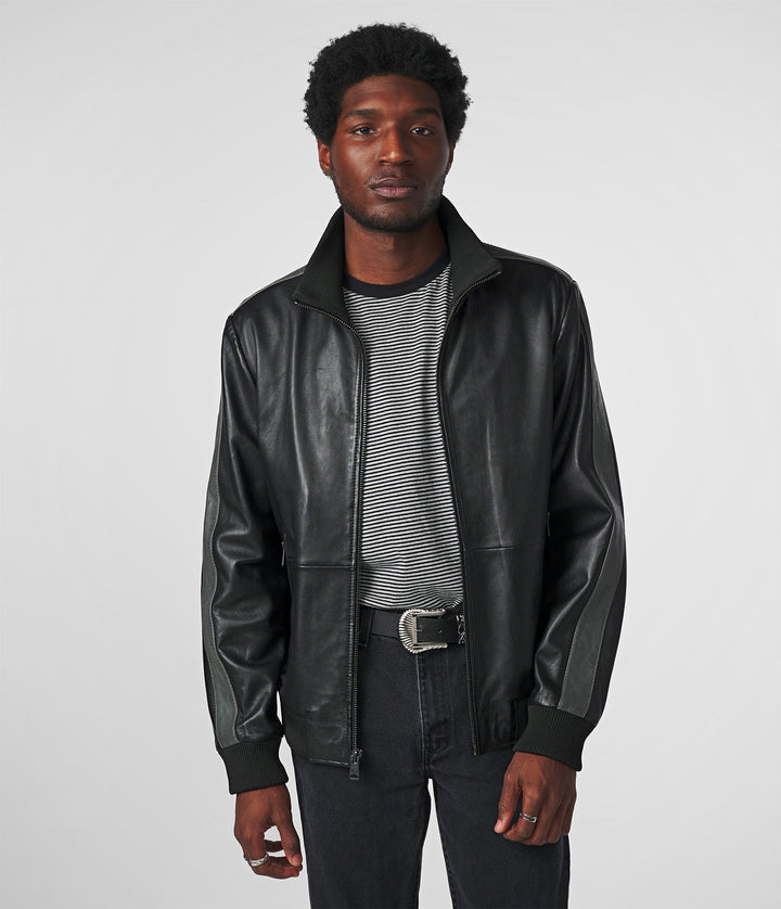 Classic bomber silhouette enhanced with striped sleeve track detail