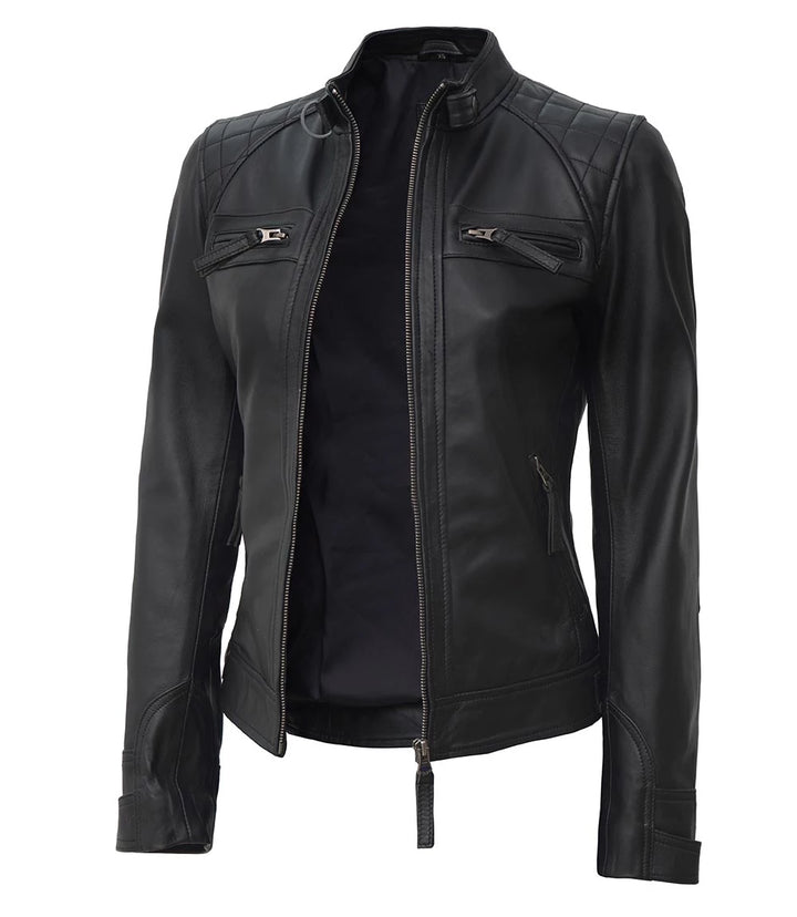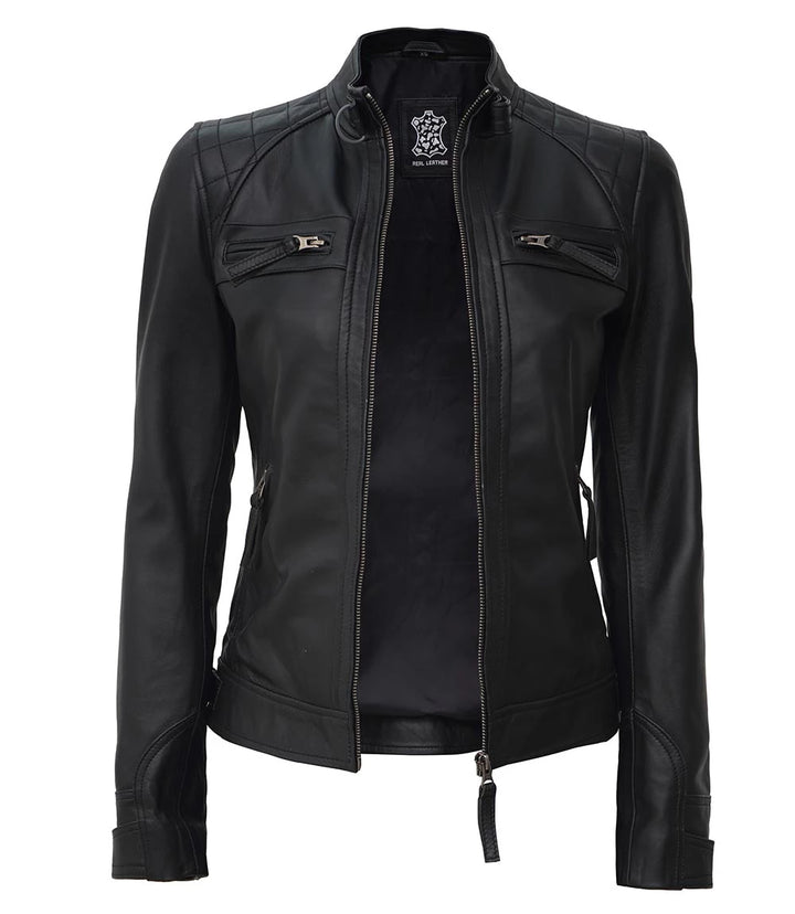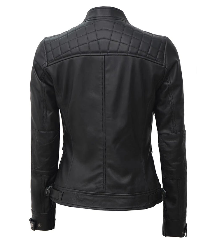 Key Features: Women’s Black Quilted Cafe Racer Leather Jacket