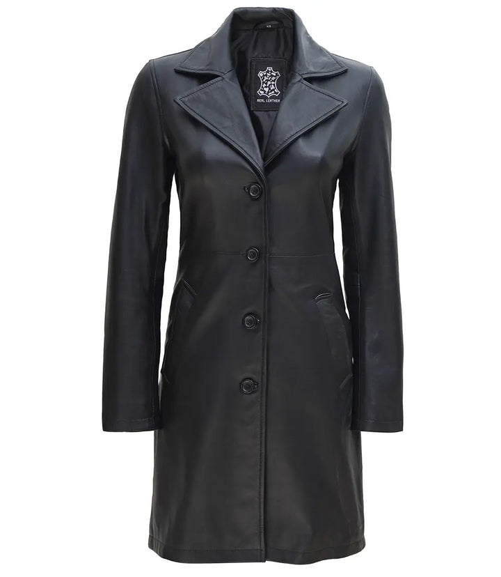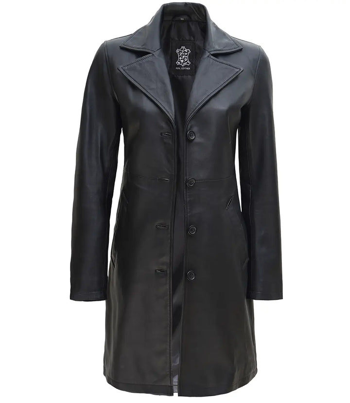 Key Features: Women’s Petite Black Leather Car Coat